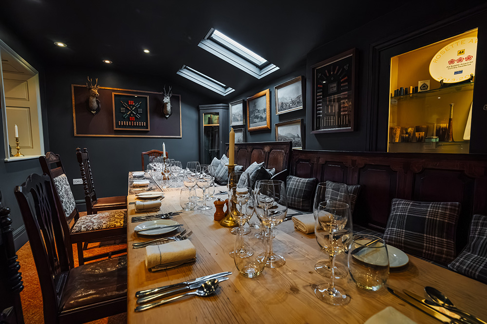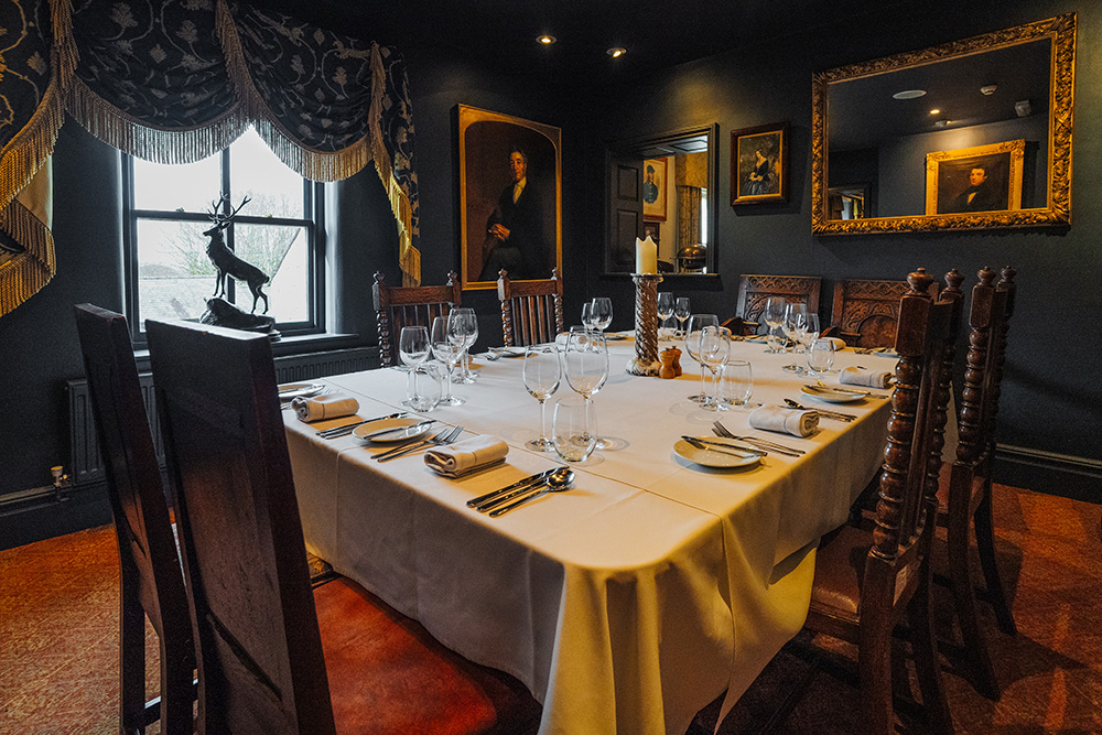 Step into The Gun Room, our cosy private dining space, a haven of serenity designed for intimate gatherings. With a charming coal fire and snug armchairs, this room exudes warmth and comfort. Perfectly suited for groups of 4 to 10, it offers an inviting atmosphere where you can relax and enjoy a delightful meal in the company of friends or family.