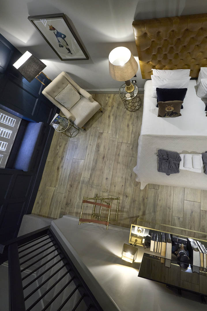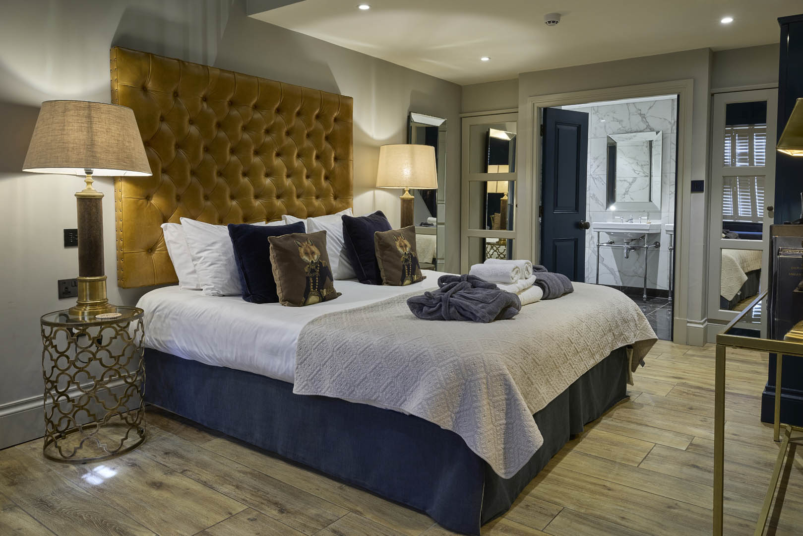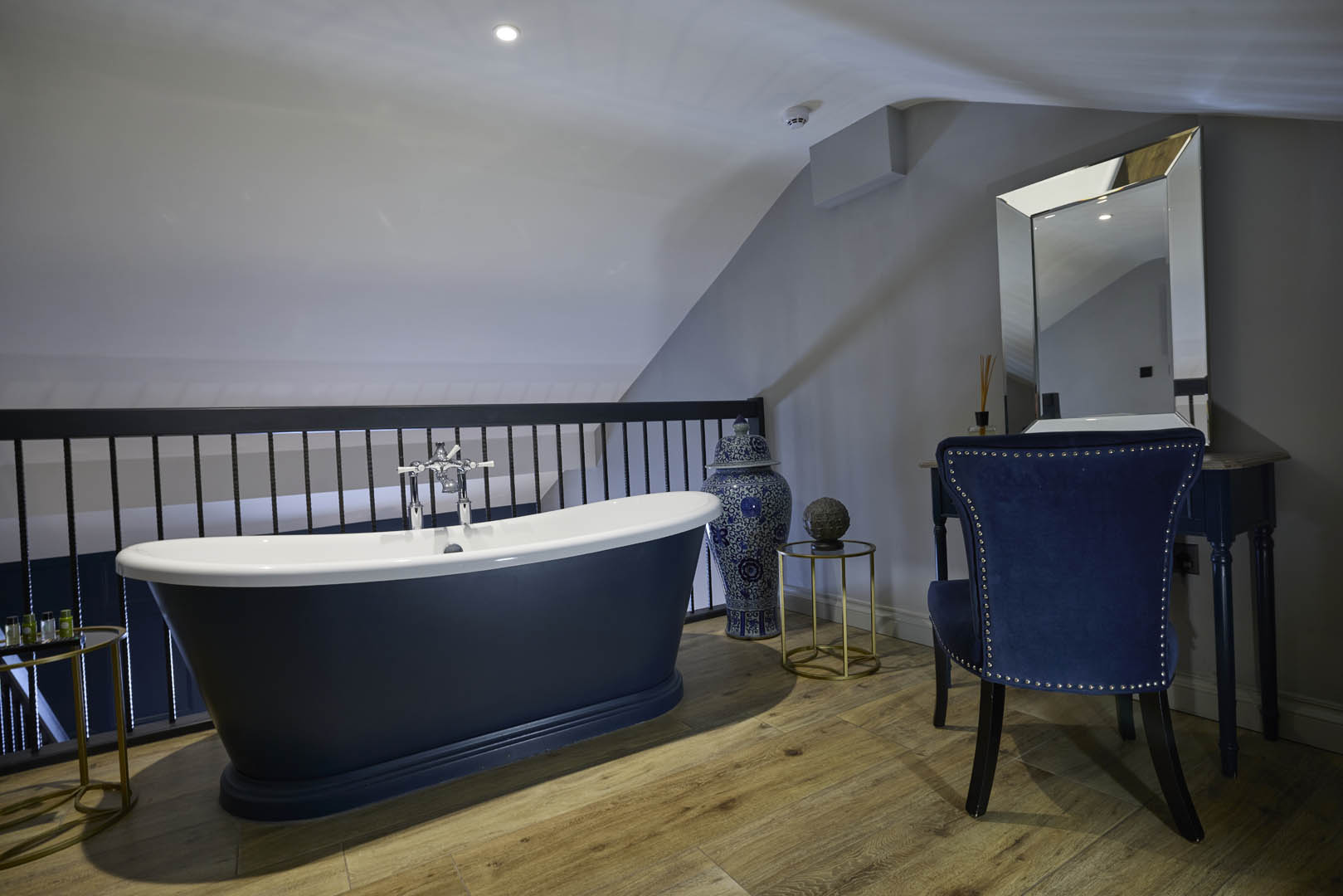 Mr Fox offer a blend of elegance and indulgence, perfect for a luxurious escape. This beautifully appointed room features a stunning mezzanine level with a roll-top bath and private dressing room, creating a truly unique and relaxing space.
