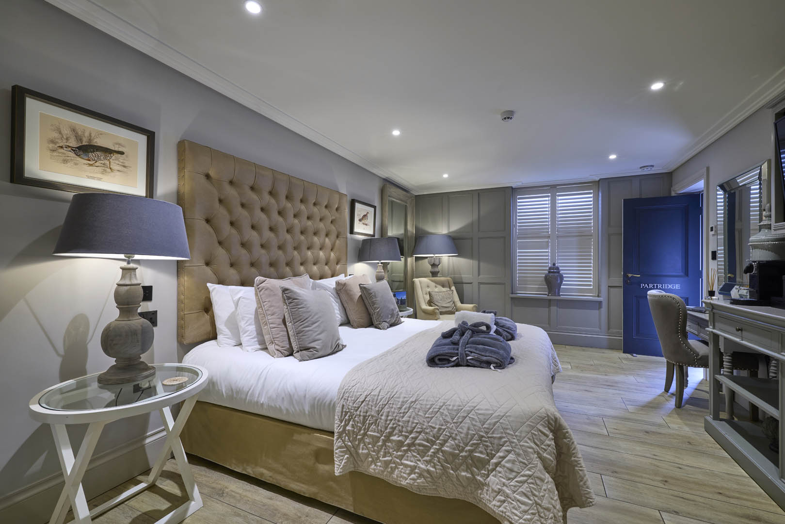 The Partridge Room is a beautifully designed space that offers comfort, style, and thoughtful touches — perfect for a restful getaway. With its elegant furnishings and relaxing atmosphere, it’s an ideal base for exploring or simply unwinding.